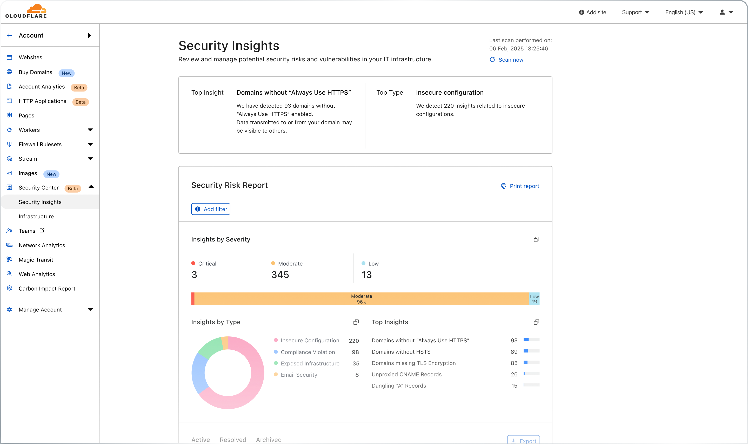 Cloudflare Security Center · Actionable Insights